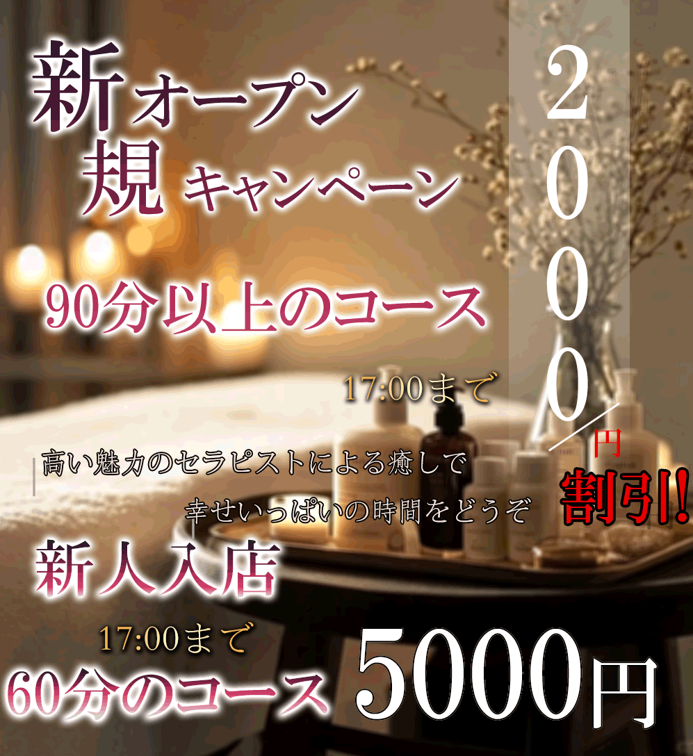 マッサージ技術+おもてなし心+高い美意識を併せ持つ厳選されたセラピストが貴様の体調・お好みに応じて究極の癒しマッサージを提供させていただきます。個室の空間で全てを忘れセラピストのリズムに身を任せ貴様自身を取り戻してください疲れた体を癒しながらストレスの発散をし、健やかな状態を保ちます